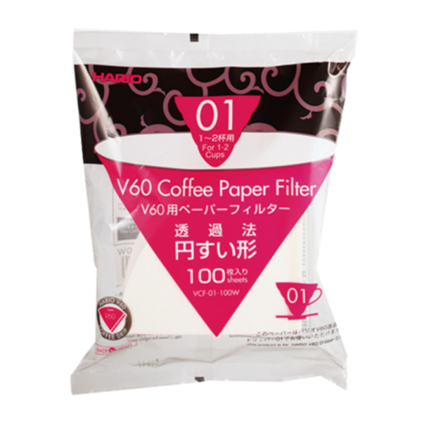 Le Filtre V60 Hario VCF-01-100W est spécialement conçu pour les drippers V60 taille 01 (1 à 2 tasses). Ce lot contient 100 filtres papier coniques blancs, adaptés au modèle VDC-01.