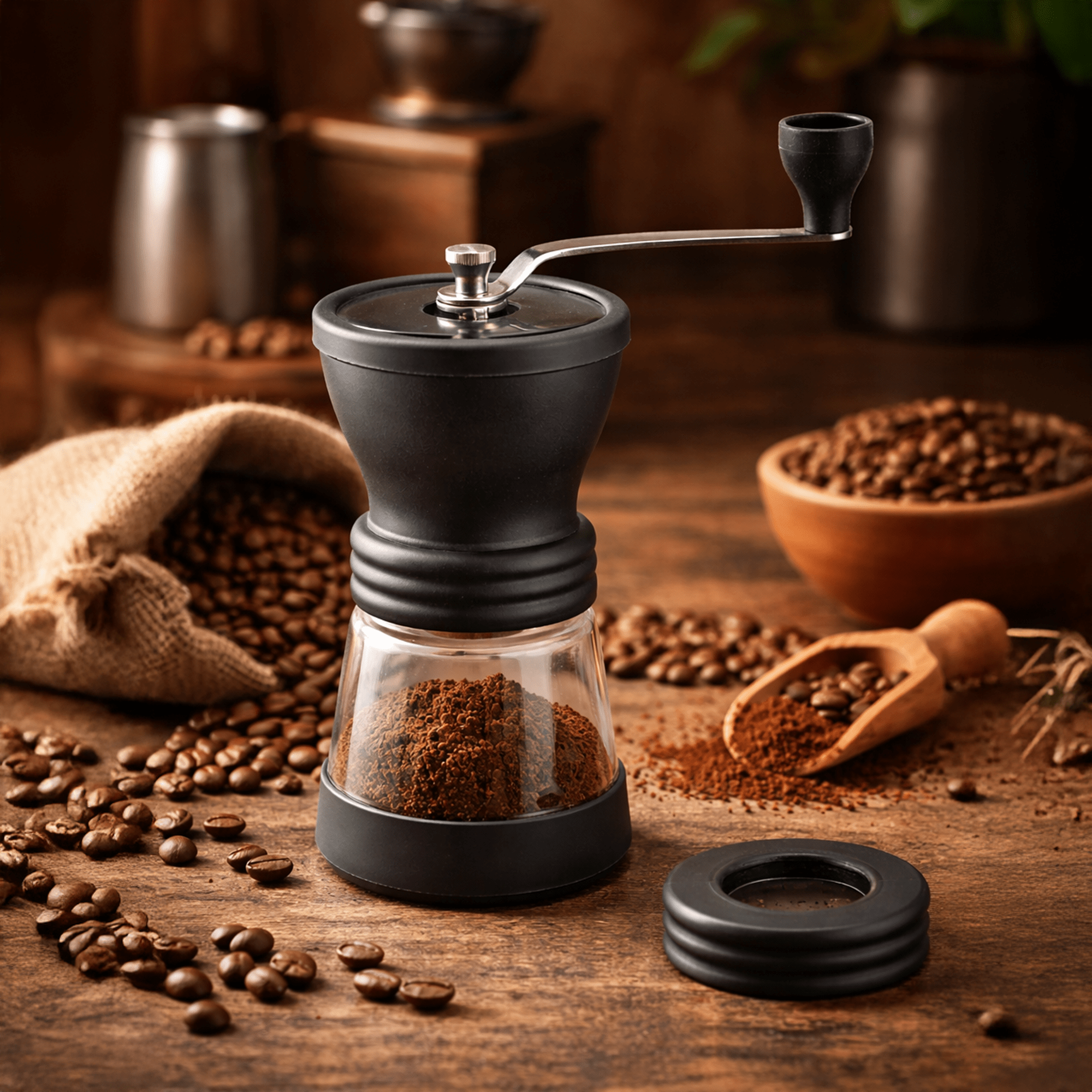 Le réglage se fait facilement grâce à une molette située sous les meules. Tu peux passer d’une mouture grossière (piston) à une mouture fine (V60) ou très fine (turc) en quelques secondes.