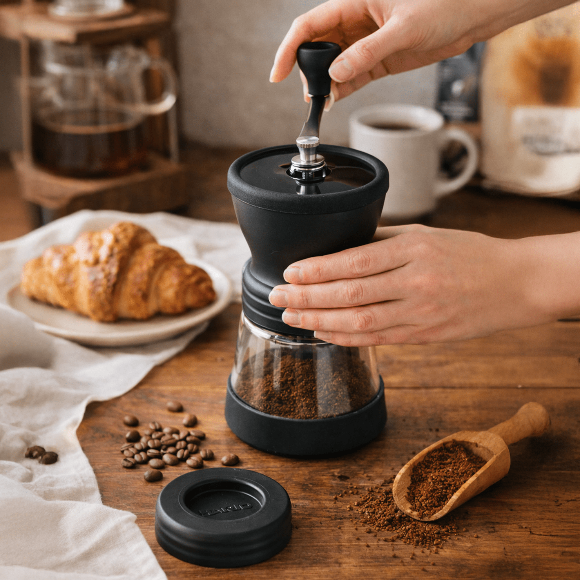 Compact, robuste et réglable avec précision, il permet d’adapter la mouture à toutes les méthodes d’extraction : V60, Chemex, piston, Aeropress, siphon ou même café turc.