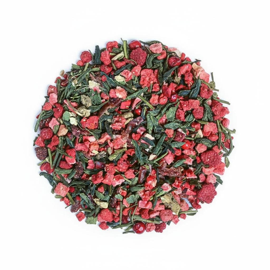 thé blanc BIO du Vietnam sublimé par 30% de framboise et des pétales de rose. Son profil aromatique mêle fraîcheur acidulée et douceur florale dans une tasse légère et raffinée. Les morceaux de framboise apportent une note vive et fruitée tandis que la rose enveloppe l’infusion d’une élégance subtile. Chaud, il révèle toute l’intensité du fruit. Glacé, il développe des nuances plus florales aux accents framboise et litchi.